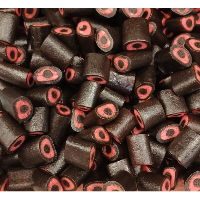 suiker, glucose-fructosestroop, stroop, tarwemeel (gluten), gemodificeerd mais- en aardappelzetmeel, ammoniumchloride, zout, geheel gehard plantaardig vet (palmpit, kokos), dropextract, vochtvasthouder (glycerol), verdikkingsmiddel (arabische gom), emulgator (mono- en diglyceriden van vetzuren), kleurstof (karmijn), voedingszuur (citroenzuur), aroma's, plantaardige olie (kokos, koolzaad), glansmiddel (carnaubawas).